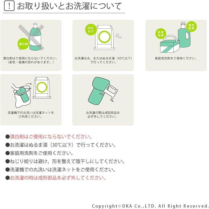 ●※お洗濯には水、またはぬるま湯(30度以下)で行ってください