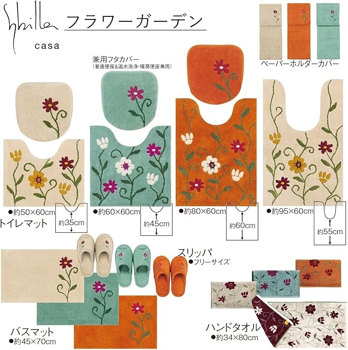 sybilla フラワーガーデン トイレふたカバー 吸着シート付き 普通用・洗浄用兼用タイプ オレンジ 16672