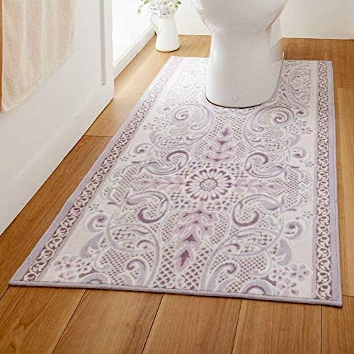 San-Luna トイレマット 単品 洗える ロング 65cm 130cm 【 モダンオーナメント 】 日本製 (抗菌 防臭 吸水 速乾) 耳長 滑り止め ずれ防止 長方形 ホワイトラベンダー | KAZESHOP