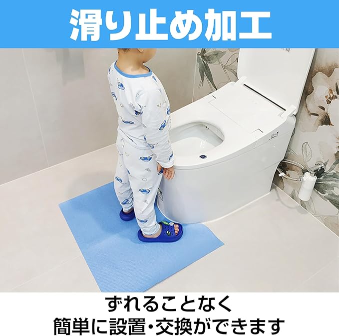 【トイトレ・介護の悩みを一発解決】トイレトレーニング中のお子様や介護が必要なご家族がいるご家庭で、尿こぼれによる床の汚れにお困りではありませんか。この使い捨てトイレマットなら、60cm 55cmのU字型設計で便器周りをしっかりカバーし、飛び散りを完全にキャッチします。ブルーの清潔感あるデザインで、お子様も楽しくトイレタイムを過ごせ、ママパパの掃除ストレスも大幅に軽減できます。