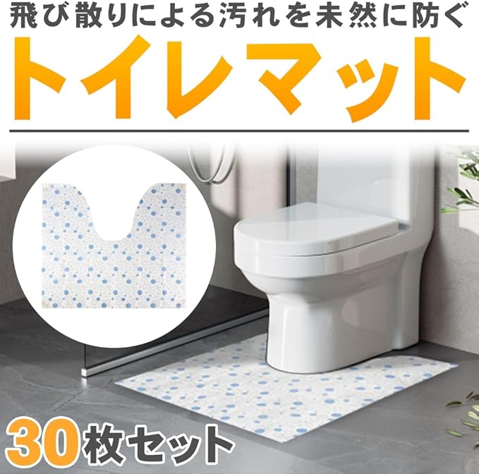 【セット内容】使い切りトイレマット 30枚 【サイズ(約)】60cm 60cm 【カラー】ブルー 【材質】不織布+PEフィルム