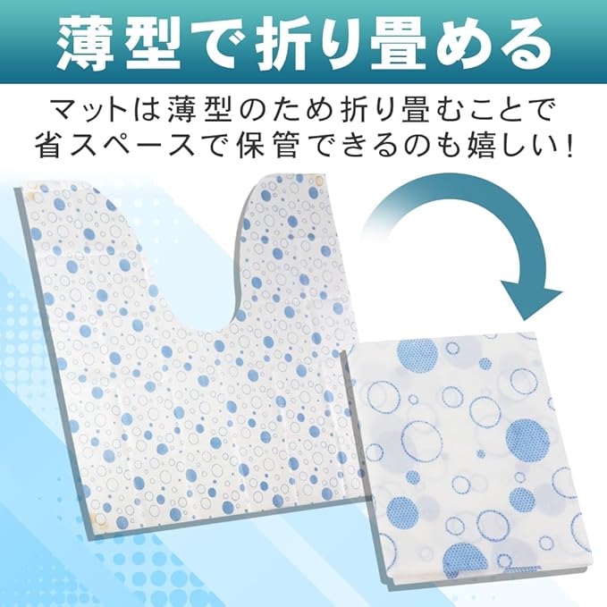 トイレ掃除が面倒・介護の負担を減らしたい・外出先のトイレが綺麗かどうか不安…といったお悩みに応えます。使い方はシートを広げて床に敷くだけ!滑り止めも完備しているので快適にお過ごしいただけます。