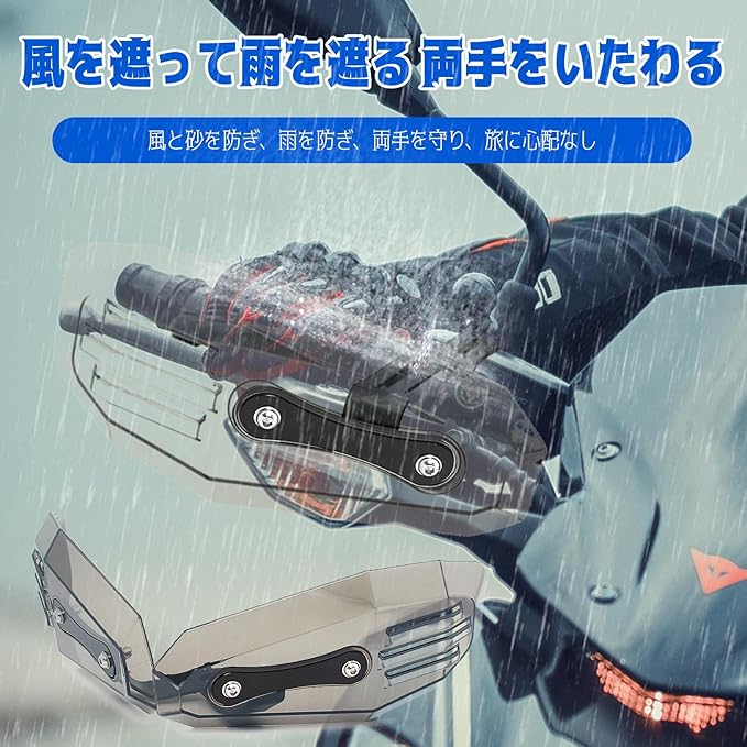 【高品質】オートバイのハンドガードはポリカーボン(PC)材質で作られ、耐落下耐摩耗、強耐攻撃性で、走行中の砕石、枝などの異物衝突から両手を有効に保護することができる。ハンドバッグは腐食に強く、変色せず、強靭で、あなたの走行に長期的に信頼できる保護を提供します。