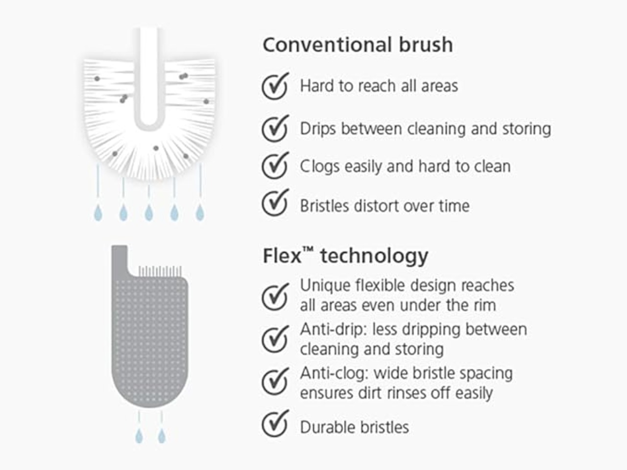 Joseph Joseph Flex - スマートで衛生的なシリコン製トイレブラシ、ホルダーセット、フレキシブルな液垂れ防止、目詰まり防止ディープクリーンヘッド - ステンレス製 【正規品】70517 | KAZESHOP