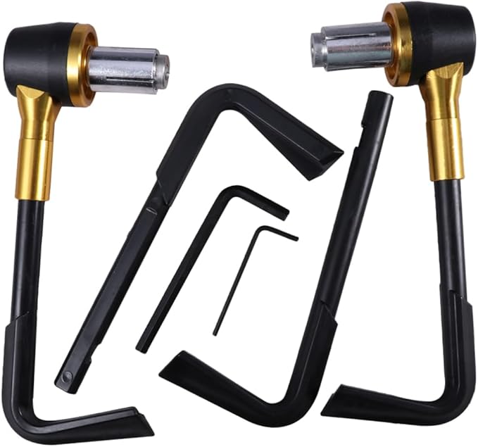 7/8インチ22mmのハンドルバーに対応したこのモーターサイクル用CNCブレーキクラッチレバー手握りハンドルバーガードは、耐久性に優れたアルミニウム合金とABS素材で構成されています。滑りにくい設計は振動を吸収し、スムーズなスロットル操作と優れたコントロール性を実現。調整可能な長さと角度により、多様なレバータイプにフィットし、快適な操作感を提供します。取り付けも簡単で、古くなったグリップの交換に適しています。街乗りの際は、他のライダーや車のミラーなどとの不意な接触による前ブレーキの誤作動を防ぎ、 走行を支援。日常のライディングからツーリングまで幅広く活用できる設計です。ゴールドの美しい仕上げは、機能性だけでなくバイクの外観も引き立てます。