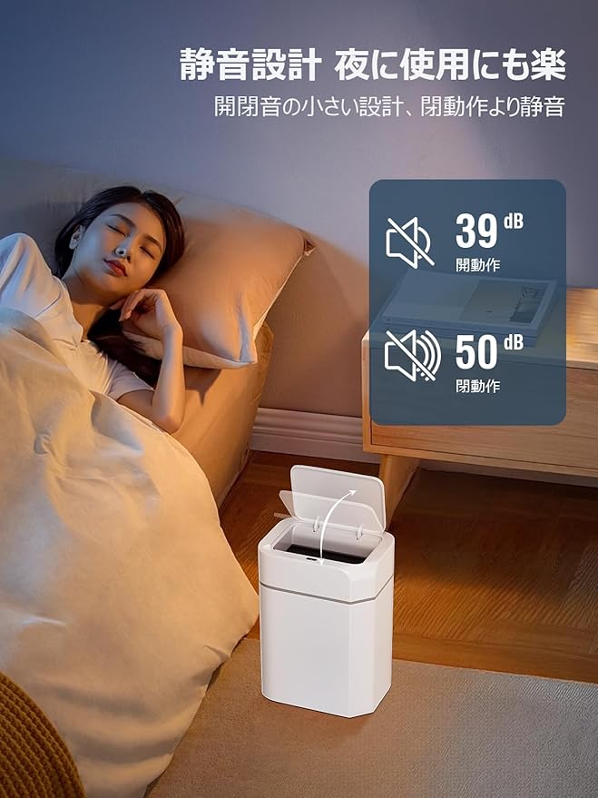 【静音設計&2024最新型】蓋の縁には振動を減る部品が付き、従来のものと比べて静音機能がより素晴らしいです。開動作音はわずか39dBで、閉動作音はわずか50dBで、夜にベッドルームに使っても、うるさく感じません。2024最新の四角デザインで、シンプルな外観は無印でおしゃれ、リビングルームに適合います。
