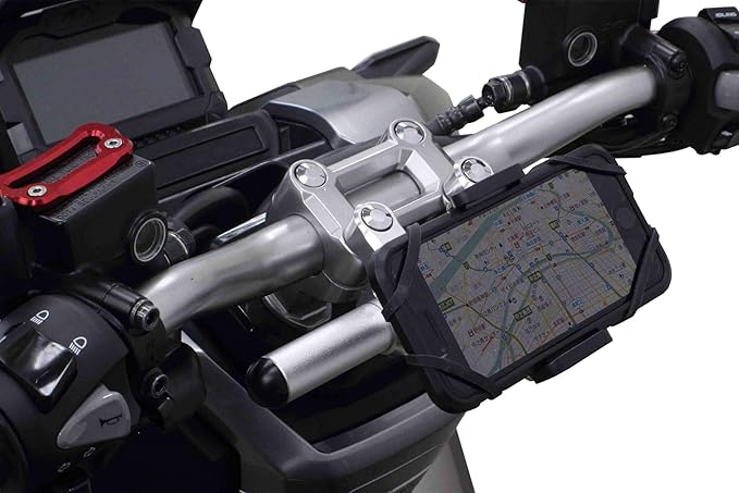 本製品はハンドルガードにΦ22.2パイプを採用している為、ハンドルクランプタイプのモバイルホルダー等が装着出来、スマートフォンやナビゲーションの固定が 可能になります。