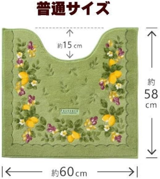 ●普通サイズトイレマット、スリッパの2点セット。 ●丸洗いができるのでいつも清潔です。●ナチュラルなテイストを表現したトイレタリー。 ●日本製ならではのカーヴィング技法で、立体感を表現。 ●マットは日本製です。 ※オカ プロヴァンス グリーン ※セット 1:トイレマット(約58cm 60cm ) 2: スリッパ トイレマット: サイズ:約58cm 60cm 首下:約43cm 素材:アクリル100%(吸水加工・抗菌防臭加工) 生産国:日本 裏面すべりどめ加工 / スリッパ: サイズ:28cm 22.5cm 7cm 足のサイズ:約25cmまで 素材:綿75%・ポリエステル25% 生産国:中国製 裏面:塩化ビニル ※当商品は衛生商品ですので、返品をお請けできません。 ※適合します:40~46cm 奥までかかりませんが装着可能です。:47~52cm (フタ長さ+前部厚) ※自動開閉機能付きのトイレでは自動開閉機能はお使いになれません。 ※ 【お洗濯をする場合のご注意点】 ・乾燥機はご使用にならないで下さい。(熱により変形・損傷の恐れがあります)・柔軟剤や漂白剤はご使用にならないで下さい。・ドラム式などの一部の形式の洗濯機はご使用できない場合があります。洗濯機の取扱説明書をよくご確認の上、洗濯して下さい。 ・家庭用洗剤をご使用の上、洗濯機での丸洗いは洗濯ネットをご使用下さい。 ・初めは多少毛が抜けますので、他の物とは別にして下さい。・この製品に使用しているゴムは直射日光に弱い性質があります。必ず陰干しにしてください。 ●当商品は、通販用梱包の為、フタカバーの台紙を取り外しております。