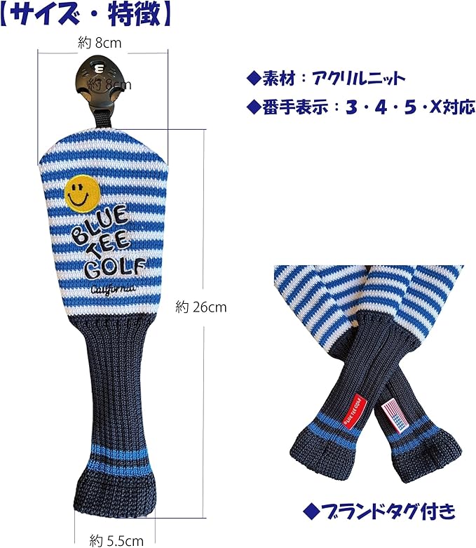★BLUE TEE GOLF California72 ●ニット ヘッドカバー ●ユーティリティー用 ●カラー:全6色 ■番手:3・4・5・X ■サイズ:長さ 約23cm x 幅 約7cm(伸縮)