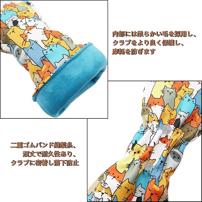 絶妙にカットされた漫画の猫のプリント:カバー ゴルフクラブのキュートな子猫柄はユニークで識別しやすく、クラブを簡単に識別することができ、あなたの道具にキュートなタッチを加えることができます