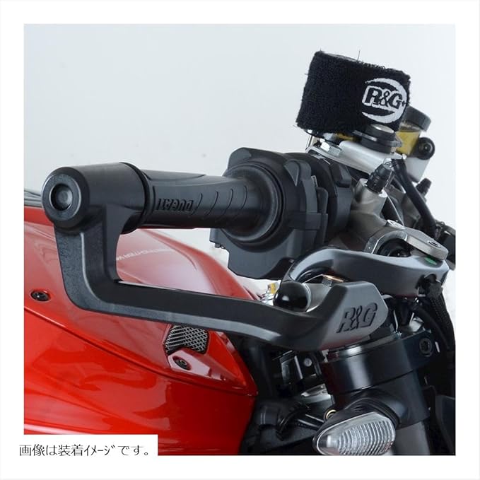他のバイクやライダーとの偶発的な接触によるフロントブレーキ/クラッチレバーが誤って作用するのを防ぐために開発された「レバーガード」現在では世界中のほぼすべてのモーターサイクルレーシング(ACU、MSVR、FIM、MotoAmerica)に採用されており、レースエントリーには必需となりました。車種専用パッケージされた製品は専用スペーサー、ボルト類が同梱されており、取り付け作業はとても簡単です。このR&Gのネーミングされた特別なデザインは、DuPont?ZytelR70G33Lを採用し、強度と軽量性を兼ね備え、アクシデント後の破断を防ぎ、ブレーキレバー自体を護ります。