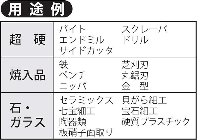 用途:超硬・ガラス製品・アクセサリー等の精密加工、金型の仕上げ等に