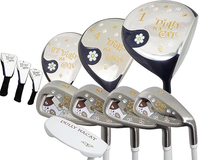 ラウンドに必要なクラブを8本とダリーナキャットらしい、お洒落なデザインのヘッドカバーが付属しています。