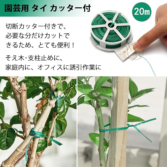 Namioka ガーデンソフトワイヤー 園芸用結束線20m 結束ソフトワイヤー バラ用やわらかバンド 1セット 園芸用ひも 園芸用結束用品 含む植物支柱誘引クリップ18pc 菜園 野菜 つる 薔薇用品 | KAZESHOP