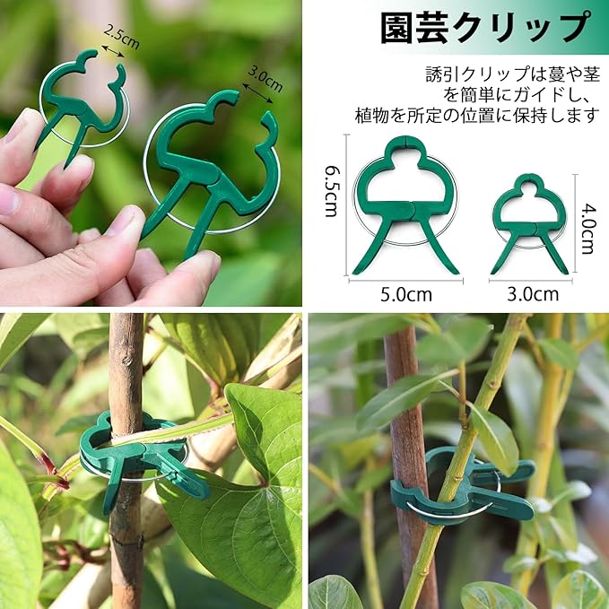 【幅広い適用性】 あらゆる植物の栽培に対応し、さまざまな悩みを解決します。園芸ソフトワイヤーは茎の細い植物に適しており、園芸フィッシュボーン型結束バンドは茎の太い植物に最適です. また、園芸固定クリップはツル植物の固定に便利で、用途に応じて使い分けが可能です