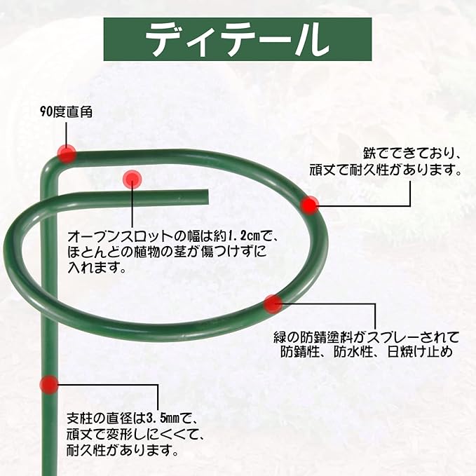 【高品質】 鉄でできており、緑の防錆塗料がスプレーされています。頑丈で変形しにくく、しっかりと立っていて、植物をよくサポートします。 再利用可能で耐久性、防錆性があります。
