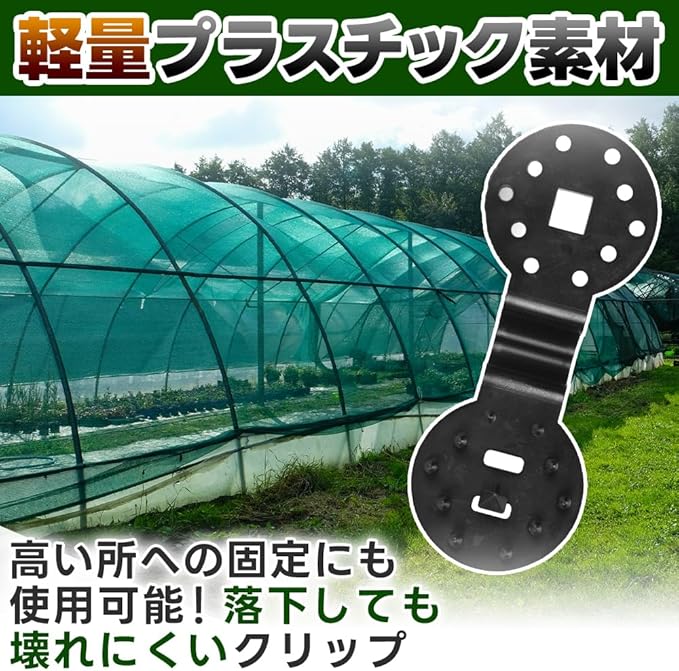 大容量100個セットでのご用意なので、ネットが弛まないよう1枚につき多数のクリップを使っても余裕があります。害獣除けだけでなく、葉焼け防止や降雪対策など様々な用途で活躍する便利アイテムです。