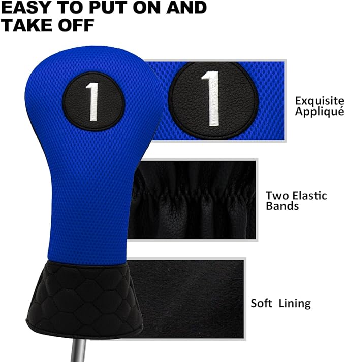 【高品質な素材】:ゴルフヘッドカバーは高品質な素材を採用しております。表地は耐磨耗性の良いメッシュで、耐久性が良くて、長持ちです。内側のボアも厚めにし、肉厚のあるしっかりした作りで大切なゴルフクラブをキズから守れます。