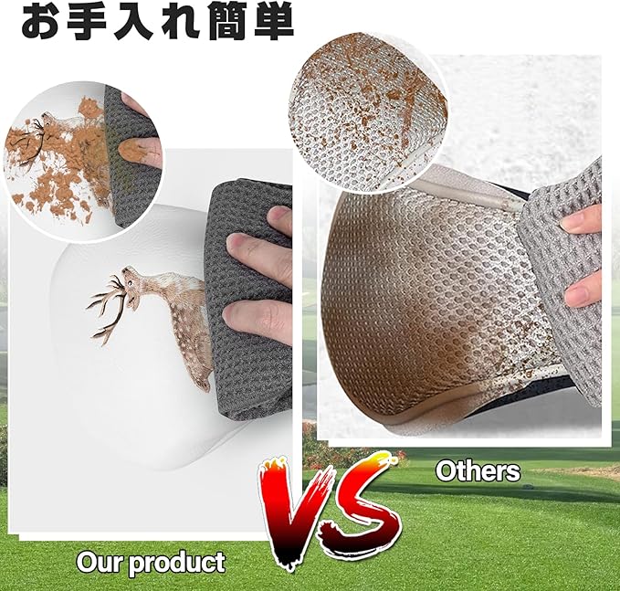 【高品質な素材】:ゴルフヘッドカバーは高品質な素材を採用しております。表地は耐磨耗性の良い合成皮革(PUレザー)で、耐久性が良くて、長持ちです。更に、防水で、うっかりで雨に降られても心配なしで、汚れなどでも気軽に拭き取れます。内側のボアも厚めにし、肉厚のあるしっかりした作りで大切なゴルフクラブをキズから守れます。
