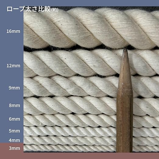 【サイズ】ロープ規格は太さ約9mm 長さ約15mです。お好みの長さにカットしお使いになれます。
