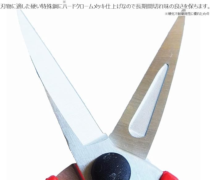 刃物に適した硬い特殊鋼にハードクロームメッキで仕上げているので切れ味が持続します。