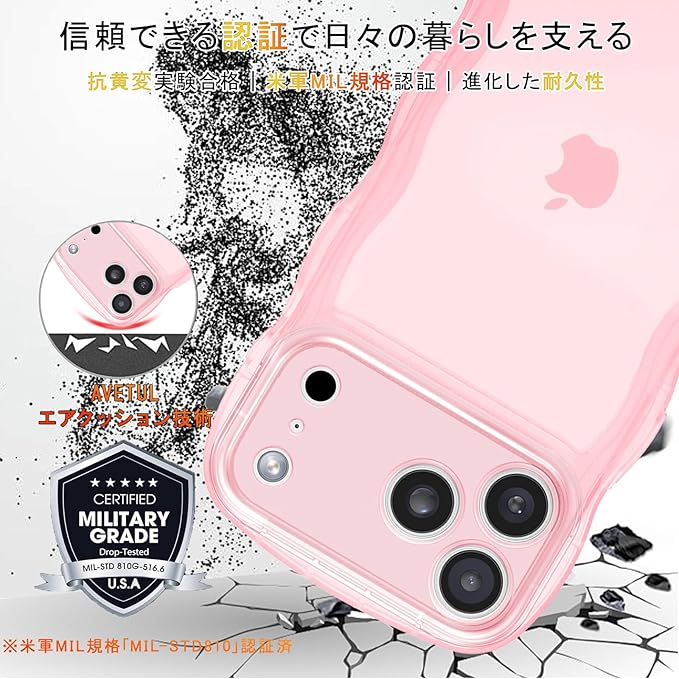 AVETUL iPhone 17 Pro Max ケース クリア ウェーブ アイフォン17プロマックスケース 韓国 うねうね おしゃれ 黄ばみなし かわいい ソフトTPU 滑り止め 薄型 軽量 iPhone 17 Pro Max スマホケース ワイヤレス充電対応 ストラップホール付き アイフォン 17 プロマックス ウェーブ カバー (クリア/ピンク) | KAZESHOP