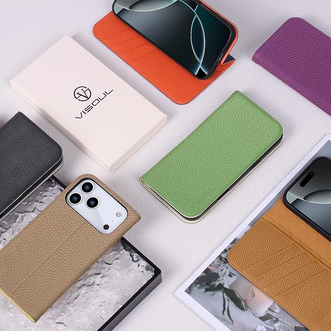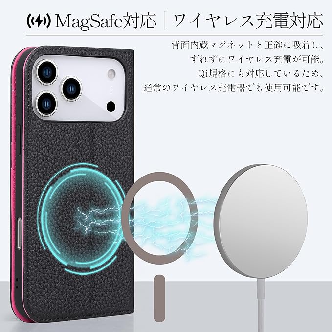 VISOUL iPhone 17 Pro Max 対応 ケース 手帳型 本革 アイフォン17 プロマックス 手帳型ケース MagSafe対応 スマホケース レザー カード収納 携帯カバー 横置きスタンド機能付き マグネット式 全面保護 柔軟なTPU素材 アイホン17 ProMaxブラック・マゼンタ | KAZESHOP