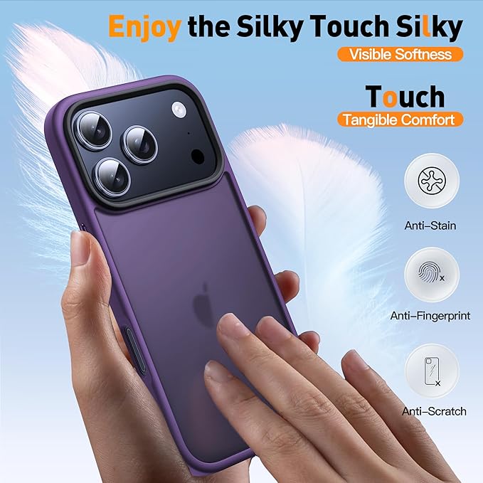 Anqrp iPhone 17 Pro Max 用 ケース 半透明 耐衝撃 滑り止め 米軍MIL規格 指紋防止 マットケース ストラップホール付き ワイヤレス充電対応 スマホケース アイフォン17 プロマックス カバー 6.9インチ ダークパープル | KAZESHOP