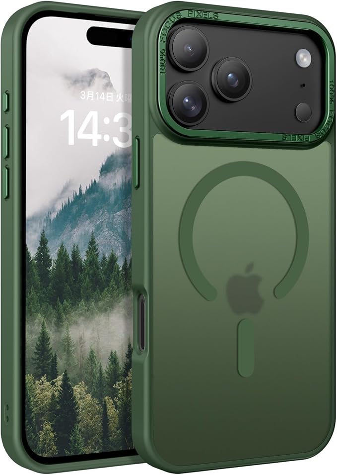 VENINGO iPhone 17 Pro Maxケース MagSafe対応 マグネット搭載 半透明 マット質感 米軍MIL規格 耐衝撃 軽量 指紋防止 擦り傷防止 全面保護 TPU+PC ストラップホール付き 黄変防止 いPhone 17 Pro Maxカバー 6.9インチ グリーン | KAZESHOP