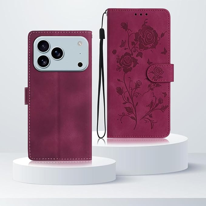 For iPhone 17 Pro Max ケース 手帳型 いphone17 pro max ケース 手帳型 花柄 女性 アイホン17プロマックス 携帯カバー 耐衝撃 財布型 スマホケース TOO&SOO あいふおん17プロマックス カバー おしゃれ スタンド機能 カード収納 TPU PUレザー 耐摩擦 擦り傷防止 手触りが良い 軽量 花 (レッド) | KAZESHOP