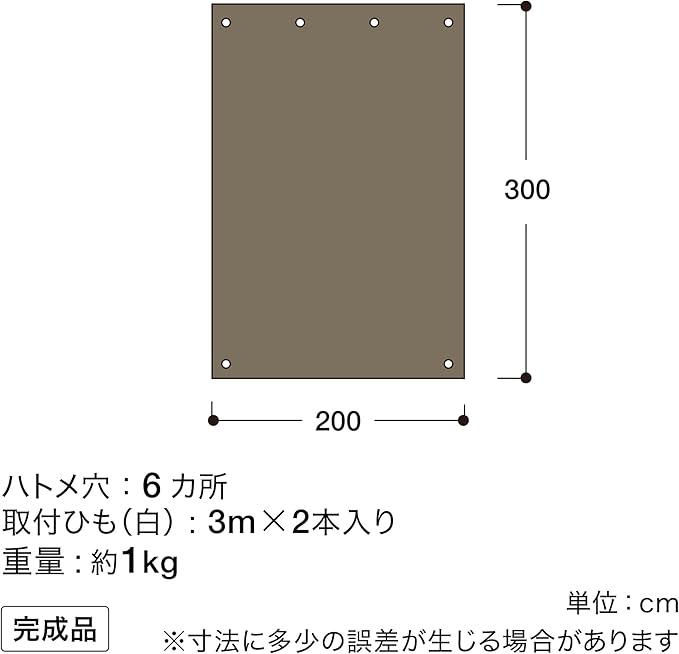 遮光率:約80%サイズ:約幅200cm 高さ300cm重量:約1kg色:ブラウン材質:生地:ポリエチレン、取付ひも:ポリエステルJSS-30BR中国