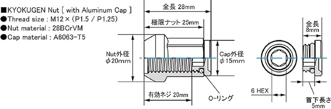 KYO-EI (協永産業) 極限 貫通ナット アルミキャップ付き M12XP1.5 20P ブルー 20個入 HP1KU