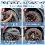 【取り付け簡単】ボディー損傷の心配なし、クリアランスが少なくても装着可能です。ほとんどのタイヤサイズに対応、クリアランスの少ない車や輸入車にも装着可能です! 厚さ約1mmなので、手軽に持ち運べやすく、突然の悪天候でもすぐに対処できます。ジャッキアップいらず、女性の方でも楽に取り付けられます。緊急用として、練習なしでも直感的に数分でタイヤに装着できます。携帯用収納バッグ付きで、車内に収納しやすく、場所を取らない。愛車に最適な選択です!