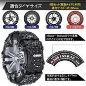 ★【サイズ調節可能】新規R12からR19までリム径対応、165-275mmまでタイヤ幅の調整が可能なので、ユニバーサル車、SUVなどの車に広く対応出来ます。フリーサイズなので、車を買い換えてもそのまま安心して使用できます。★(改良式8個セットの滑り止めチェーンは他社の6個セットより2個の滑り止めチェーンが多く、大型タイヤホイールとの互換性が大幅に向上、チェーンを2本買い足す必要はない)。