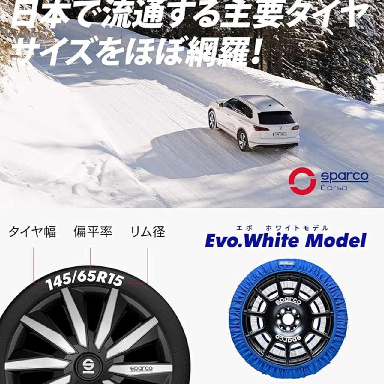 スパルコスノーソックス EVOモデル ホワイト XXLサイズ スタッドレス タイヤチェーン 布 非金属 布チェーン 布製タイヤチェーン タイヤソックス 布製タイヤ滑り止め 簡単 軽量 滑り防止 収納 雪道 グリップ タイヤカバー スノーチェーン 非金属 255/60R19 | KAZESHOP