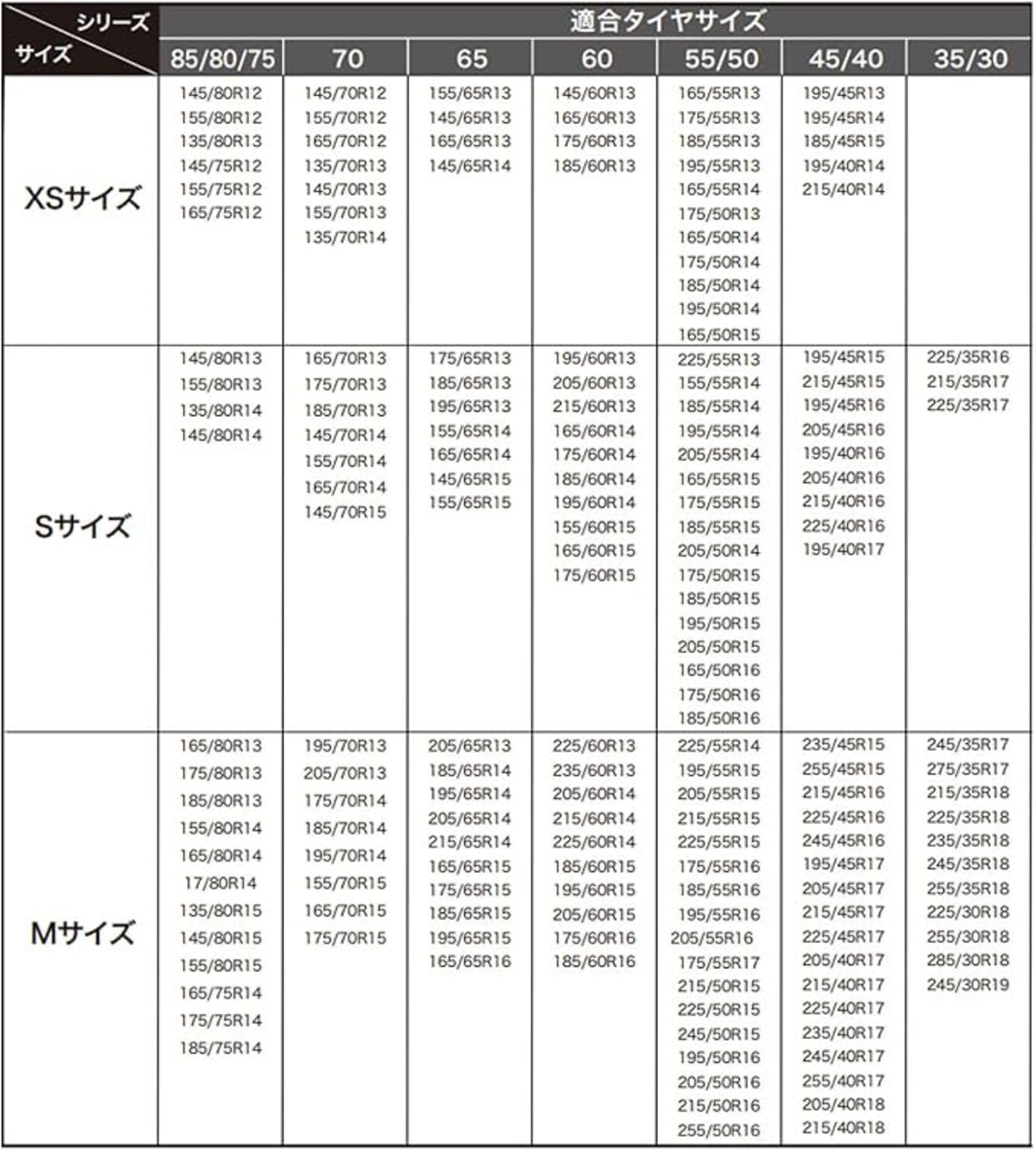 ■簡単:ジャッキアップ不要。車種を選ばず、3分程で素早く簡単に装着可能。タイヤ上部から被せ車輌を少し前進、更に残り部分を被せて車両を動かすとするっと正しい装着位置に収まります。金属製品と違い本品は多少曲がって装着しても走行中に補正されます。クリアランスの狭いスポーツカーにも。大口径タイヤにも。■軽量:超軽量でコンパクトに収納。お手入れもカンタン。