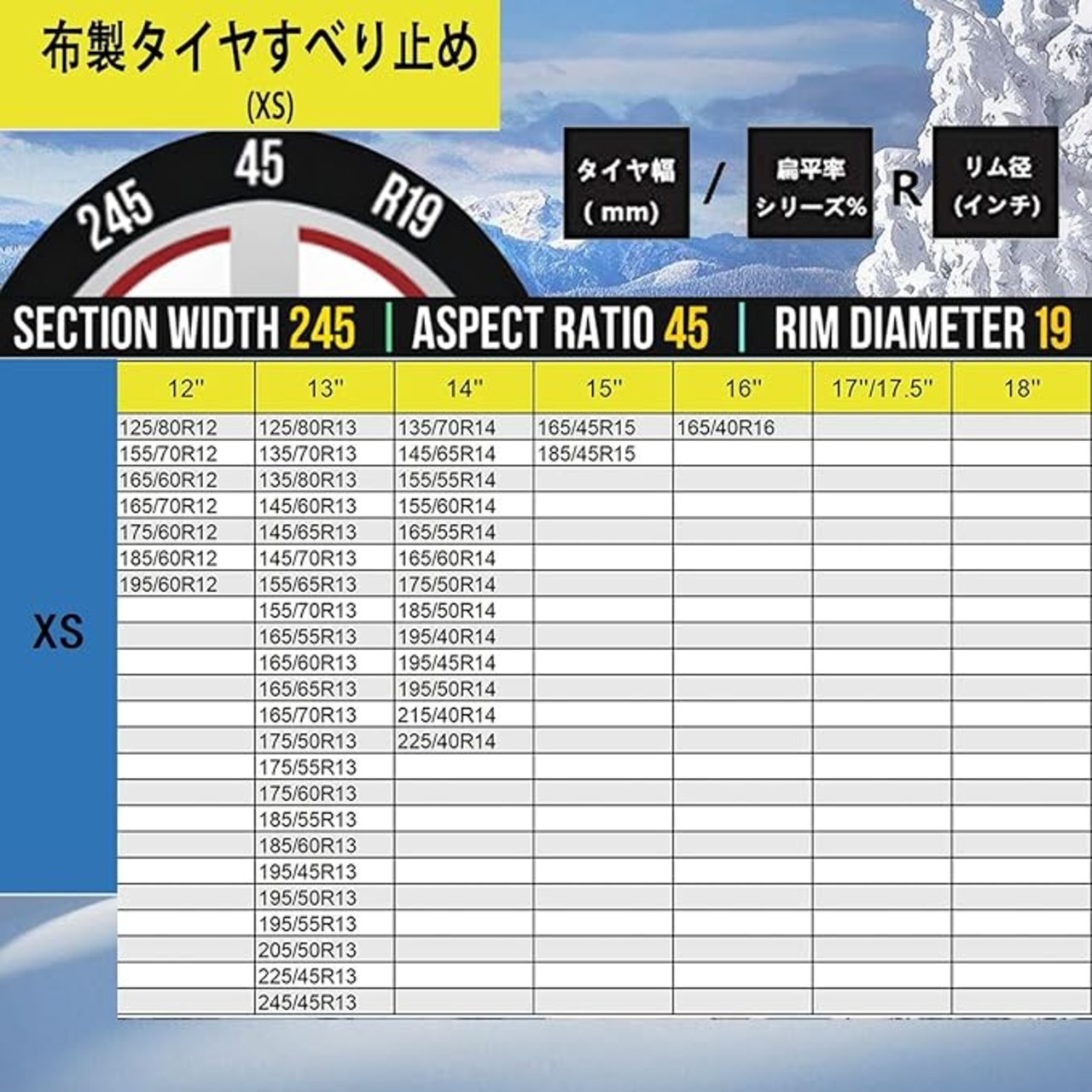 スノーソックス 布製 タイヤチェーン 非金属 雪 チェーン 軽自動車 簡単装着 ジャッキアップ不要 低振動 低騒音 タイヤを傷つけない チェーン規制 XS適応タイヤ: 165/60R12 125/80R13 135/70R13 145/60R13 145/65R13 195/45R14 195/50R14 215/40R14 225/40R14 165/45R15 185/45R15 | KAZESHOP