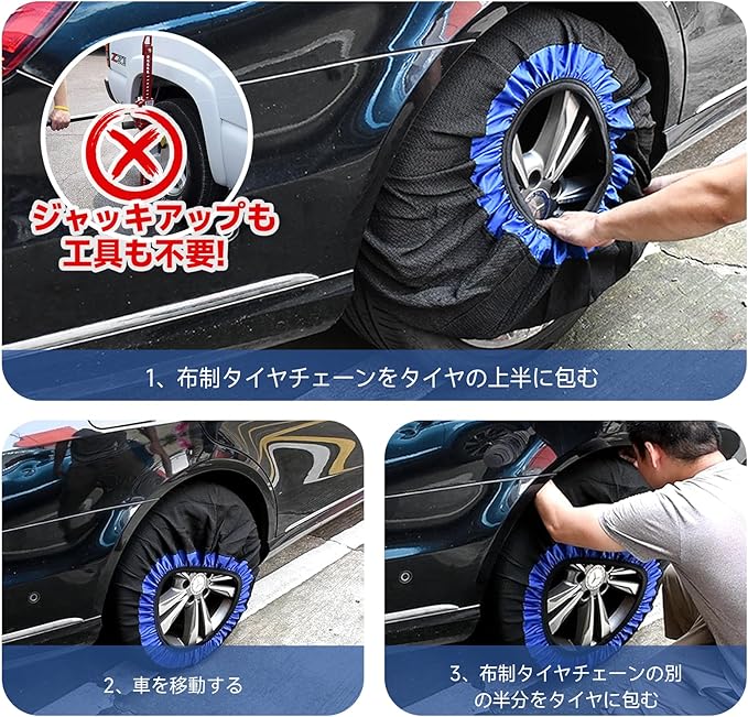 【グリップ力抜群】上質ポリエステルを採用、グリップ力を大幅に強化して、路面凍結、雪道、雨天など様々な天候に対応します。柔らかい繊維生地はタイヤを傷つけません、耐摩耗。