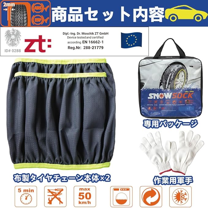 NIJOSTORE タイヤチェーン 布製 スノーソックス 軽自動車 布チェーン 非金属 スノーチェーン 2輪分 チェーン規制対応 簡単 軽量 冬雪 雪道 タイヤ 滑り止め 正規品 S-77適応タイヤ:175/80R13 175R13 205/70R13 235/60R13 165/80R14 175/75R14 185/70R14 175/65R15 185/65R15 | KAZESHOP