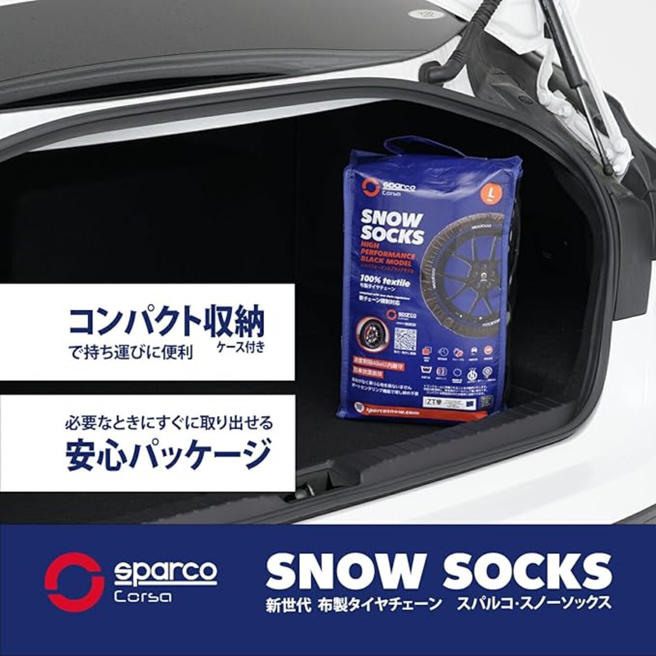 スペイン製 sparco スパルコ スノーソックス ハイパフォーマンス ブラック スノーチェーン 布製タイヤチェーン XXLサイズ タイヤサイズ:(245/60R20) ※新チェーン規制対応 | KAZESHOP
