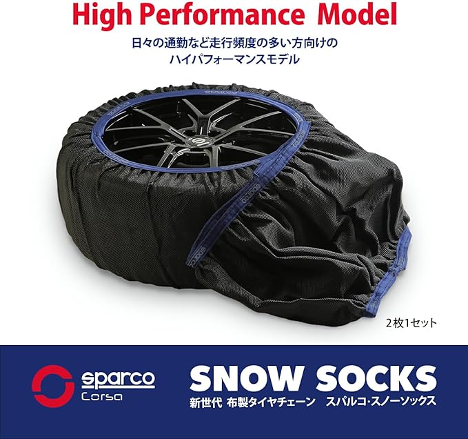 スペイン製 sparco スパルコ スノーソックス ハイパフォーマンス ブラック スノーチェーン 布製タイヤチェーン XXLサイズ タイヤサイズ:(285/45R21) ※新チェーン規制対応 | KAZESHOP