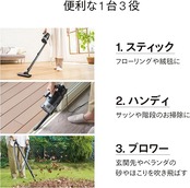 【ブロワー機能付き3WAY】スティックとハンディはもちろん、ブロワカバーを装着することで、玄関や庭先の砂や落ち葉の吹き飛ばし掃除ができるブロワとしてもお使いいただけます。