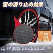【安全上のご注意】●ご購入する前に、タイヤサイズによって相応なタイヤチェーンを確認してください。 ●本商品の装着時の制限速度は 40km/h です。40km/h 以上の速度を出しますと脱落及び重大な事故の要因となりま すので制限速度は厳守して下さい。 ●耐久性は路面の状態や運転状況によって異なり、アスファルト及びコンクリート露出路面での装着走行は破損及び製品寿命を著しく低下させます。 ●本商品に破れ等の破損が生じた場合は、速やかに使用を中止して下さい。 【静かで安定する走行】雪道で金属タイヤチェーン同等の機能を発揮しますが、特殊合成繊維の布を使用するため。走行時に静かで滑らかな乗り心地実現できる布製タイヤチェーンです。騒音や振動が少なく、積雪路や凍結路でも安定性があります。そのため、乗り心地が向上するとされています。更に、布製なので愛車のタイヤが傷つきにくいです。
