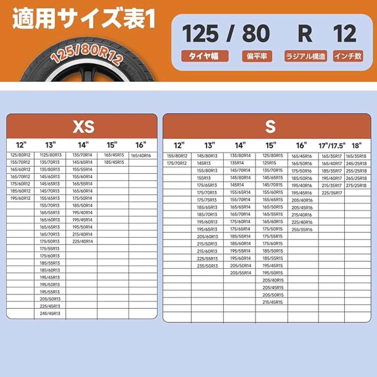 【多様なサイズ】6種類のサイズで、殆ど全ての乗用車に対応!(6つのサイズで使用可能なタイヤモデルは、製品詳細画像に表示されています。)