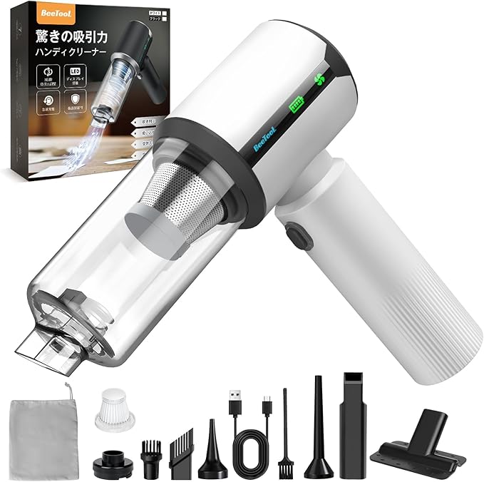 BeeTool ハンディクリーナー 多機能 【3種吸引モード&ディスプレイ搭載】40000Pa 驚きの吸引力 車用掃除機 コードレス 吹き飛ぶ/吸い込む/空気入れ/空気抜き ハンディ掃除機 強力吸引力 保護装置付 急速充電 長時間稼働 低騒音 軽量 乾湿両用 小型 Type-C充電式 メーカー保証付 人気 業務用/車用清掃/家具/家庭用 HX-606 (ホワイト) | KAZESHOP