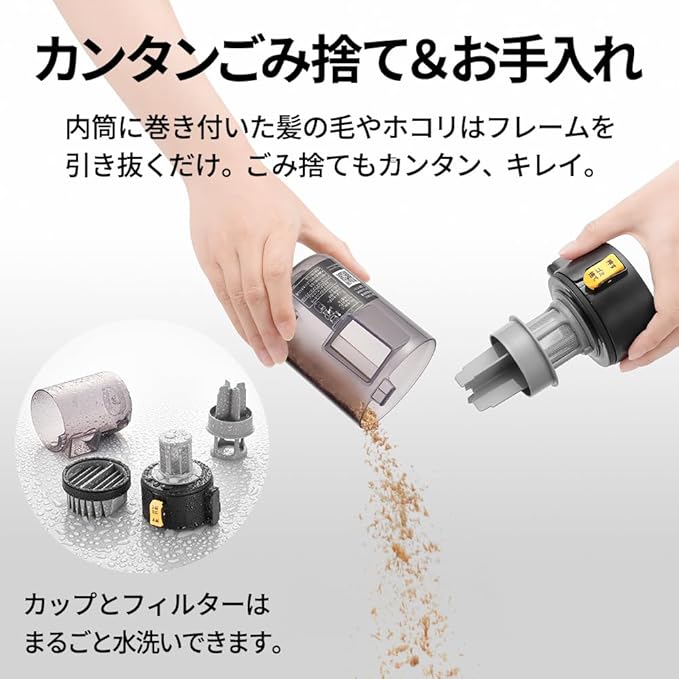 ・高効率モーターとブラシのかき取る力で吸込み力アップ。
