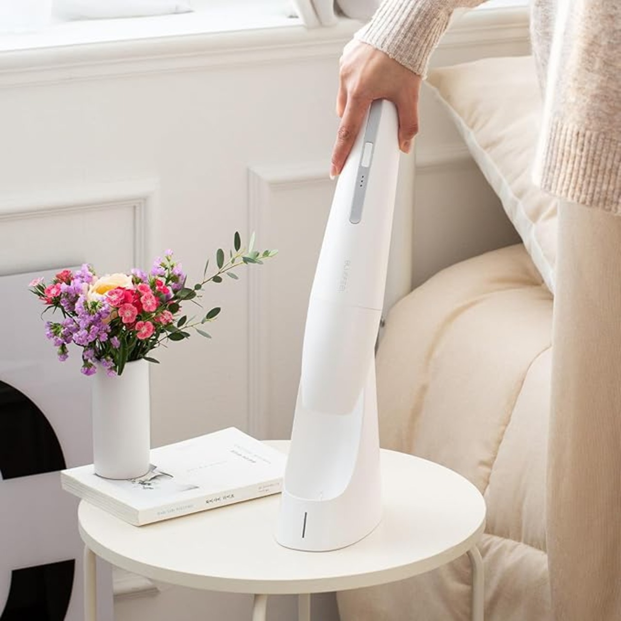 コードレスで使用できるため部屋中あらゆる場所に利用できます。コンセントの場所を探す手間が一切なく、どこでもサッと簡単に使えます。