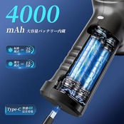 【12,000Pa 強力吸引・2段階吸調整】吸引力と作業時間の需要に応じて、標準モードの作業時間は約25分、強力モードは約15分です。最大12,000Paの強力な吸引力で、車内、デスク、ソファ、キーボードなどのホコリやゴミを簡単に掃除できます。100,000rpmのブラシレス高速モーターを搭載しており、一般的なブラシ付きモーターと比べて、過熱防止、長寿命、低電磁ノイズ、高効率、省エネの利点があります