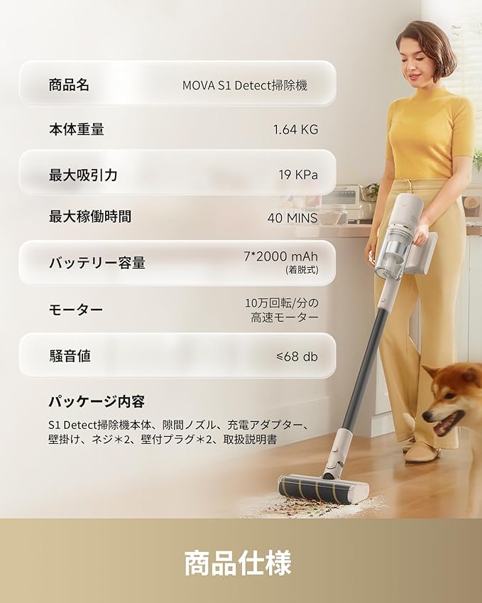 MOVA S1 Detect コードレス掃除機 19KPa強力吸引 ledライト付きホコリ可視化 スティック ハンディクリーナー HEPA 多重濾過 2 in 1 サイクロン式 掃除機 静音性 40分長時間稼働 着脱式バッテリー【3年間メーカー保証】 | KAZESHOP