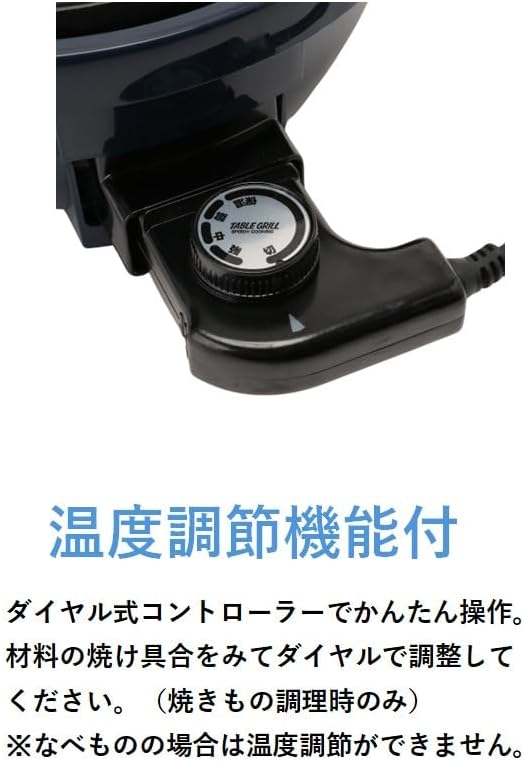 温度調節ダイヤル式の電気グリルパンです。1~3人用。